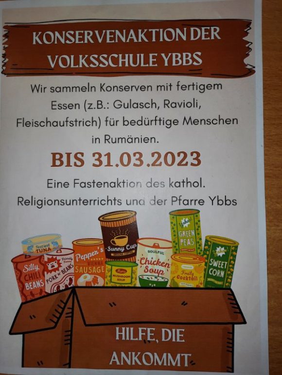 31. März, 20233. April 2023Konservenaktion der VS Ybbs Es wurden 168 Dosen gesammelt! Herzlichen Dank!