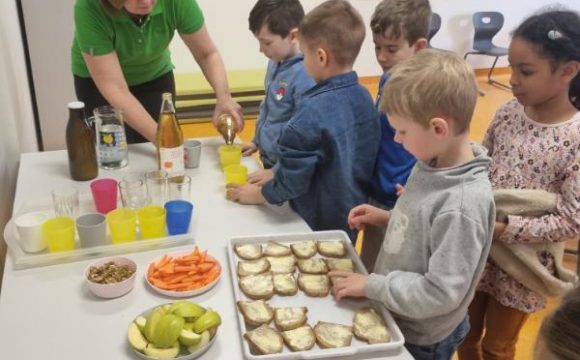 Am 21. Februar waren die Seminarbäuerinnen zu Besuch. Neben interessanten Informationen zu ihren Betrieben, erfuhren die Kinder viel über die unterschiedlichen Gütesiegel. Auch der Weg vom Kürbiskern zum Kürbiskernöl wurde den Kindern kindgerecht präsentiert. Zum Abschluss genossen die Schüler/innen der 1c Klasse eine gesunde Jause bestehend aus vielen regionalen Produkten.