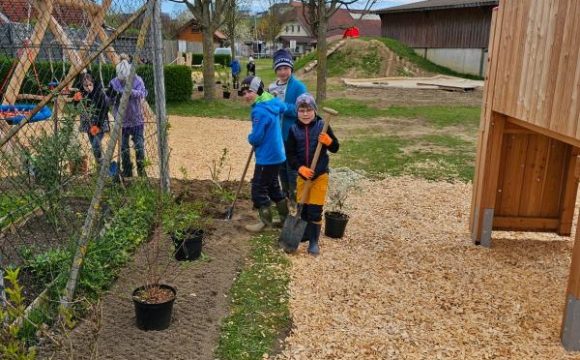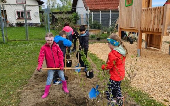 Unter fachkundiger Anleitung fand am 3. April die Pflanzwerkstatt am neuen Spielplatz in Sarling statt. 26 Kinder aus der Volksschule Ybbs waren mit großem Eifer dabei.
